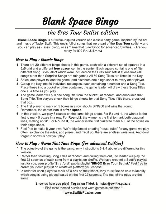 Blank Space BINGO : Taylor-inspired Party Games!